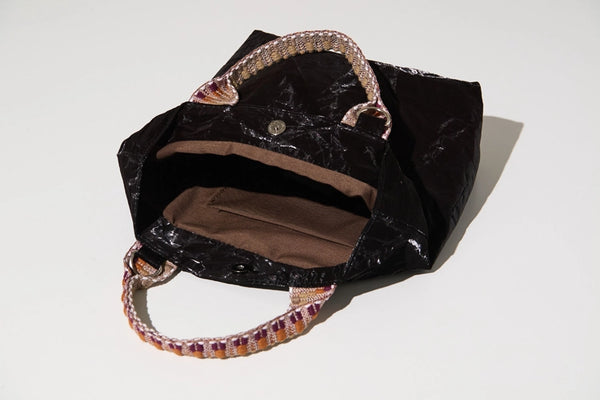 Miyansol bags are crafted from Tyvek®, a high-density polyethylene fiber developed by DuPont. Though it resembles paper, Tyvek is stronger and lighter, offering impressive elasticity, softness, and resilience. It’s an eco-friendly material formed using only heat and pressure — no chemical additives — and provides excellent UV protection, waterproofing, and moisture resistance. A modern, ultra-durable fabric with a uniquely crisp look, Tyvek makes these bags both stylish and incredibly practical.