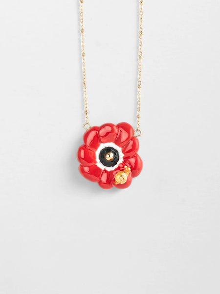 Color: Red anemone flower with tiny snail