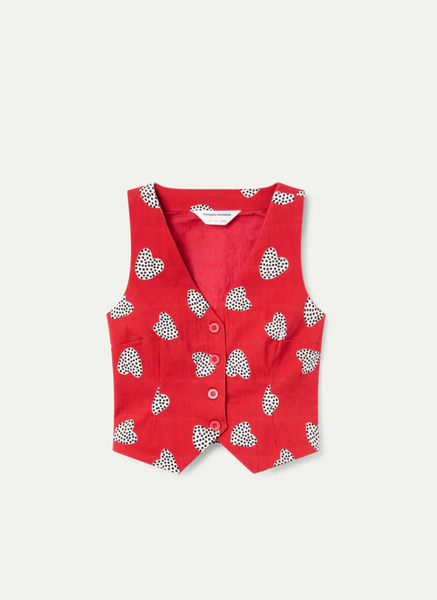 Omg, the heart challenge continues past Valentine's Day with the Harmony Vest in red covered with a dazzling black and white heart print! Wear this as is with the matching Harmony Trouser or over a white or chambray button down for a fun layered look with jeans.