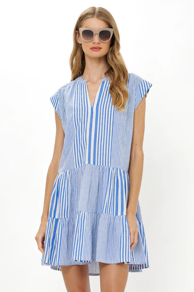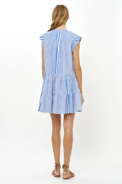 The epitome of effortless style, the Roll Sleeve Dress in Henley Blue Stripe is perfect for those who embrace the ebb and flow of life. This classic mini is crafted from a yarn dyed woven cotton in graphic blue stripes that will keep you cool and chic, whether you're lounging by the beach or navigating a busy day.